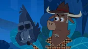 Wer hat beim Warzenschwein aufgeräumt?Sherlock Yack erinnert sich an die guten Ratschläge seines Lehrers Abrakadaverus.Bild: © ZDF/Mondo tv