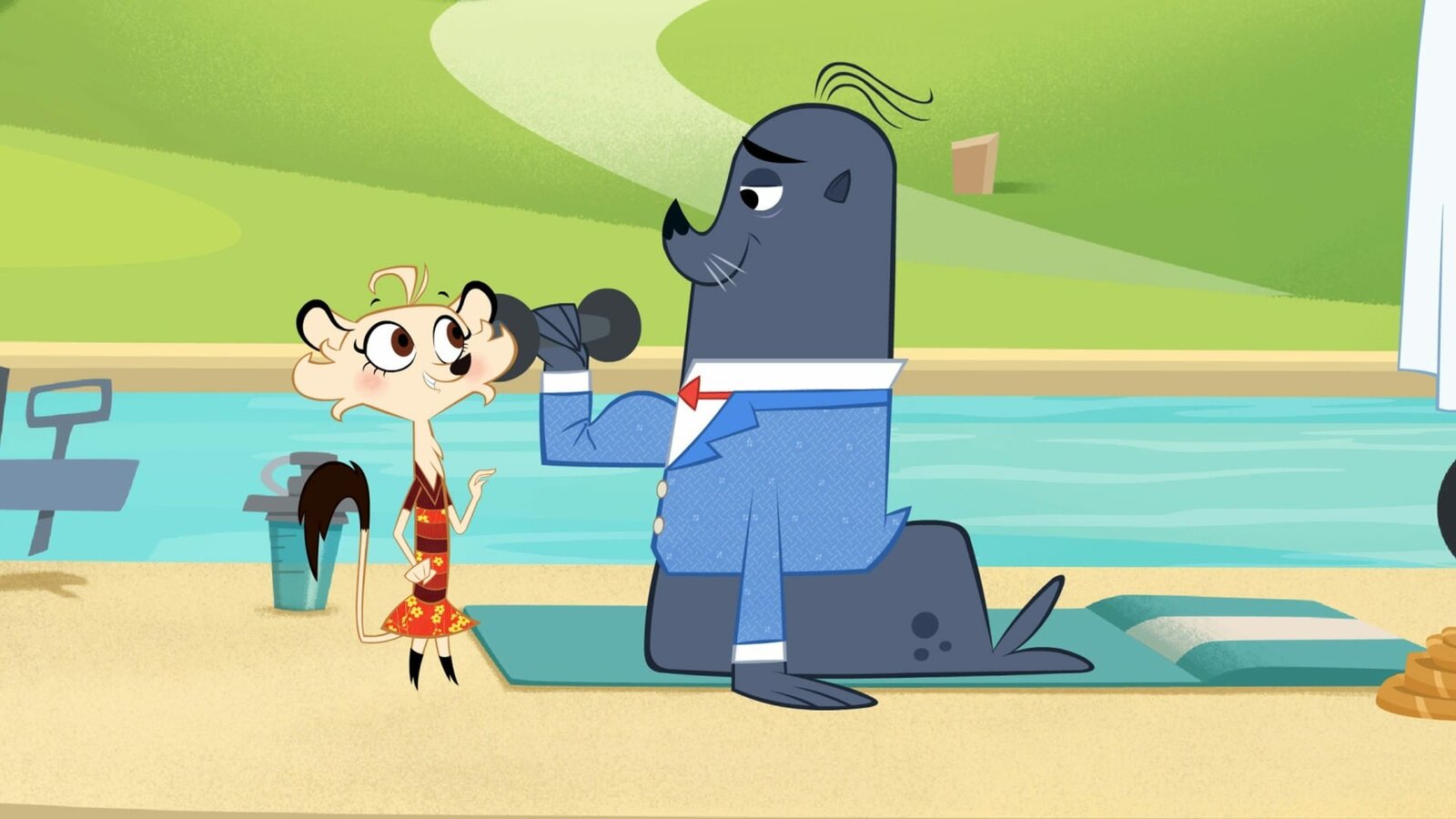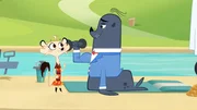 Wer hat beim Stinktier rumgekleckert?Stolz zeigt Robbe Hermione seine starken Armmuskeln.Bild: © ZDF/Mondo TV