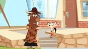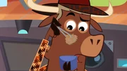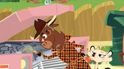 Wer hat beim Stinktier rumgekleckert?Sherlock Yack lädt Hermione zu einem Heu-Puffer ein.Bild: © ZDF/Mondo TV