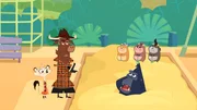 Wer hat die Schildkröte einzementiert?Sherlock Yack und Hermione müssen den Besitzer der Ukulele finden.Bild: © ZDF/Mondo tv