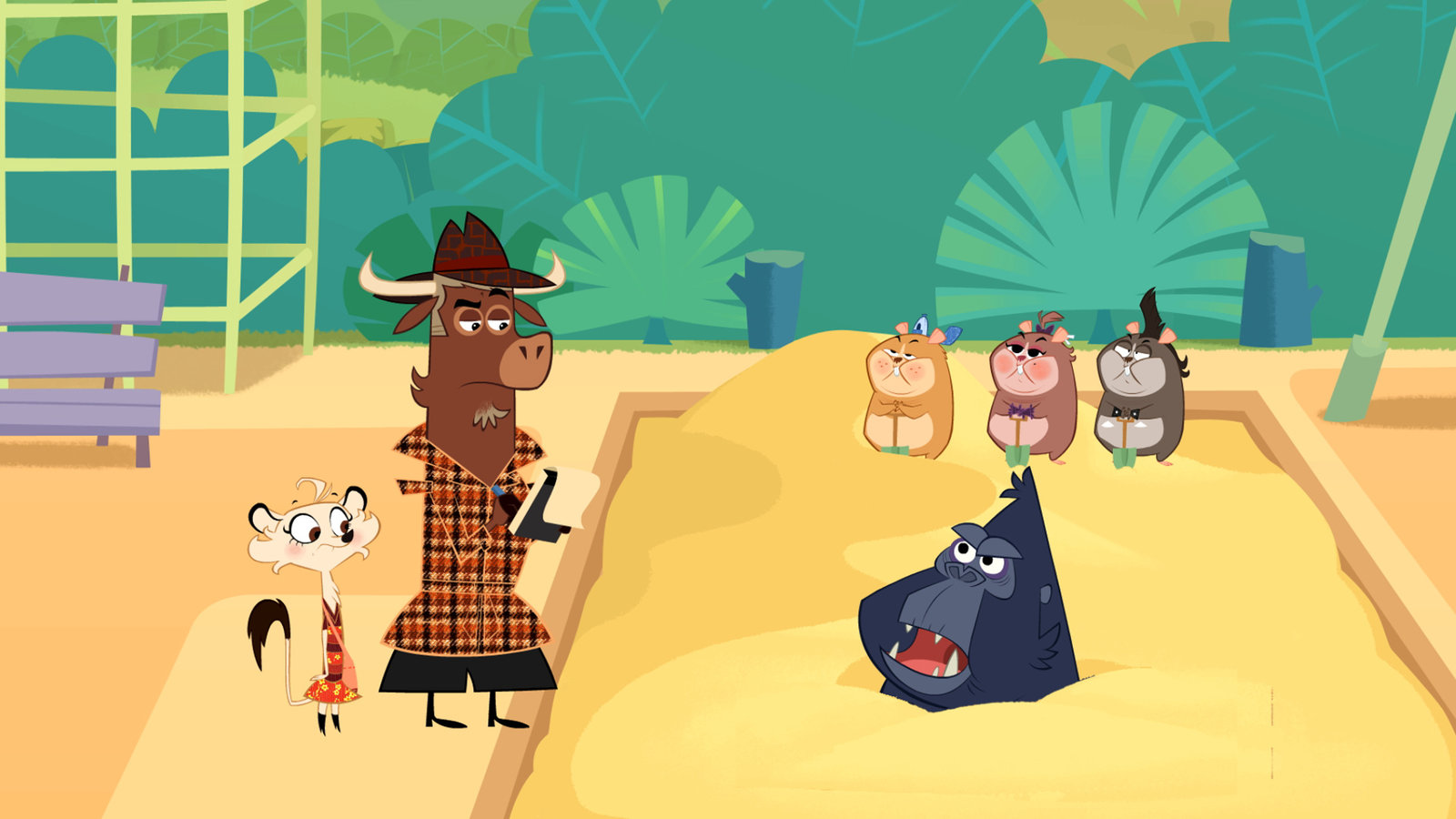 Wer hat den Gorilla eingebuddelt?Wer hat den Gorilla im Sandkasten eingebuddelt?Bild: © ZDF/Mondo tv