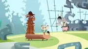 Wer hat den Tiger aufs Korn genommen?Hermione beweist Sherlock Yack wie geschickt sie mit Holzpaste umgehen kann.Bild: © ZDF/Mondo TV