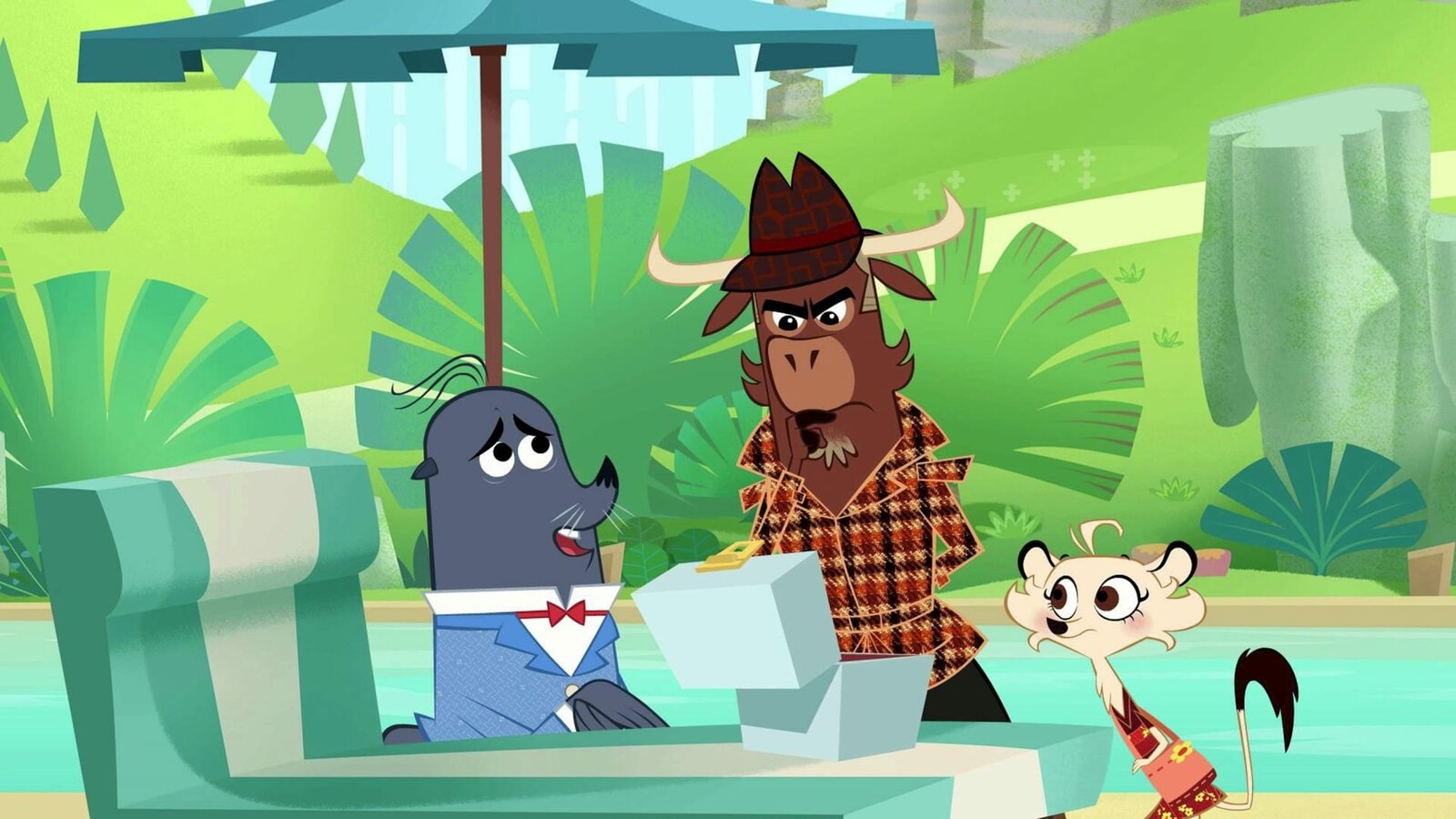 Wer hat beim Pinguin gewütet?Sherlock Yack, Hermione und Frau Panda wollen im Elefantenbassin schwimmen.Bild: © ZDF/Mondo TV