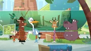 Wer hat den Paradiesvogel vollgeschmiert?Sherlock Yack und Hermione grübeln: Wer war der Übeltäter?Bild: © ZDF/Mondo tv