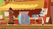 Wer hat das Meerschweinchen aus der Bahn geworfen?Stachelschwein hat Sherlock Yack und Hermione benachrichtigt: Jemand hat Piranha in ein Glas mit eiskaltem Wasser gesteckt.Bild: © ZDF/Mondo TV
