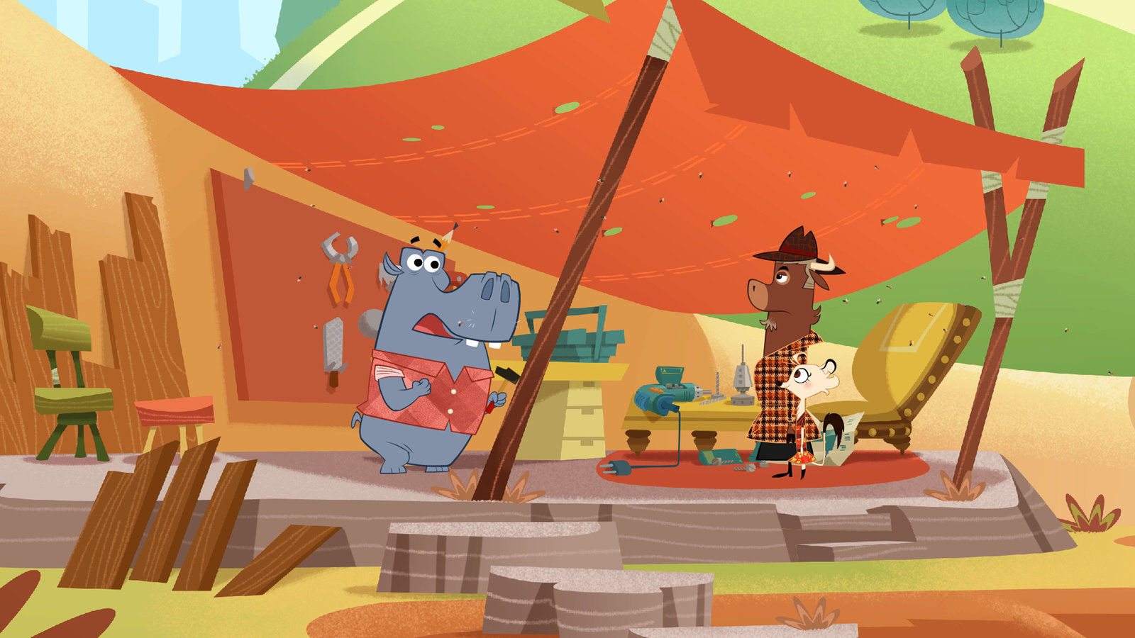 Wer hat das Krokodil zum Weinen gebracht?Nilpferd ist ein ungeschickter Handwerker, sogar für den Hammer braucht er eine Gebrauchsanweisung!Bild: © ZDF/Mondo tv