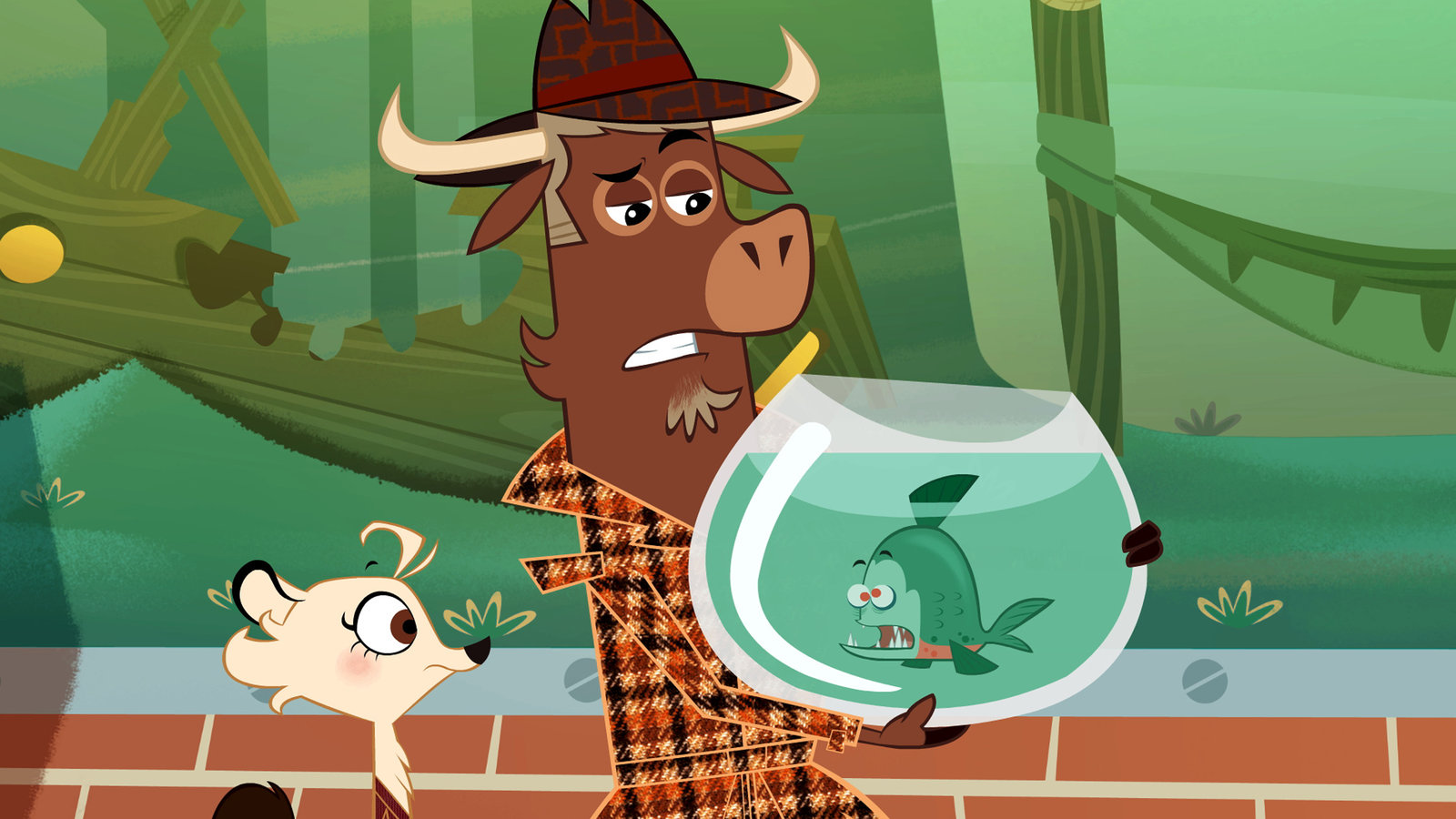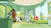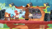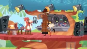 Wer hat das Meerschweinchen aus der Bahn geworfen?Piranha berichtet Sherlock Yack und Hermione vom Tathergang.Bild: © ZDF/Mondo TV