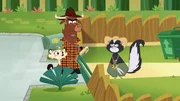 Wer hat dem Pfau den Bürzel rasiert?Frau Stinktier kann als Gärtnerin geschickt mit der Schere umgehen.Bild: © ZDF/Mondo tv