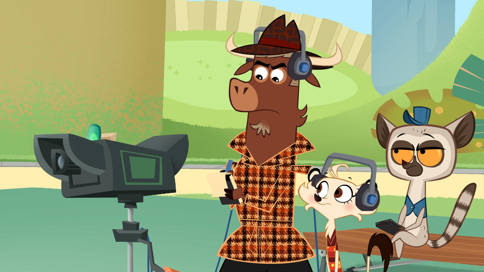Wer hat beim Warzenschwein aufgeräumt?Sherlock Yack macht sich Notizen, während er zusammen mit Hermione und dem Maki die Aufzeichnungen betrachtet.Bild: © ZDF/Mondo tv
