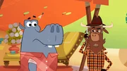 Wer hat das Nilpferd veräppelt?Sherlock Yack grübelt, wer sich an Nilpferd rächen wollte.Bild: © ZDF/Mondo TV