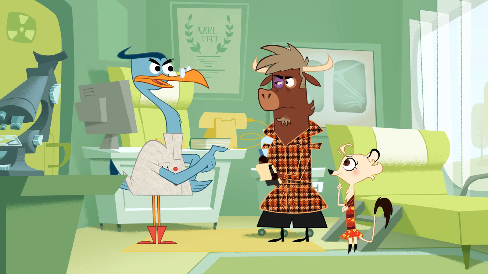 Wer hat den Grizzly zum Lachen gebracht?Dr. Schnabelmann verschreibt Sherlock Yack Augentropfen.Bild: © ZDF/Mondo tv
