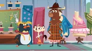 Wer hat beim Pinguin gewütet?Der Pinguin berichtet Sherlock Yack und Hermione von dem Anschlag auf seine Sommerkollektion.Bild: © ZDF/Mondo TV