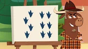 Wer hat La Kranich gereizt?Sherlock Yack vergleicht die verdächtigen Fußspuren.Bild: © ZDF/Mondo tv