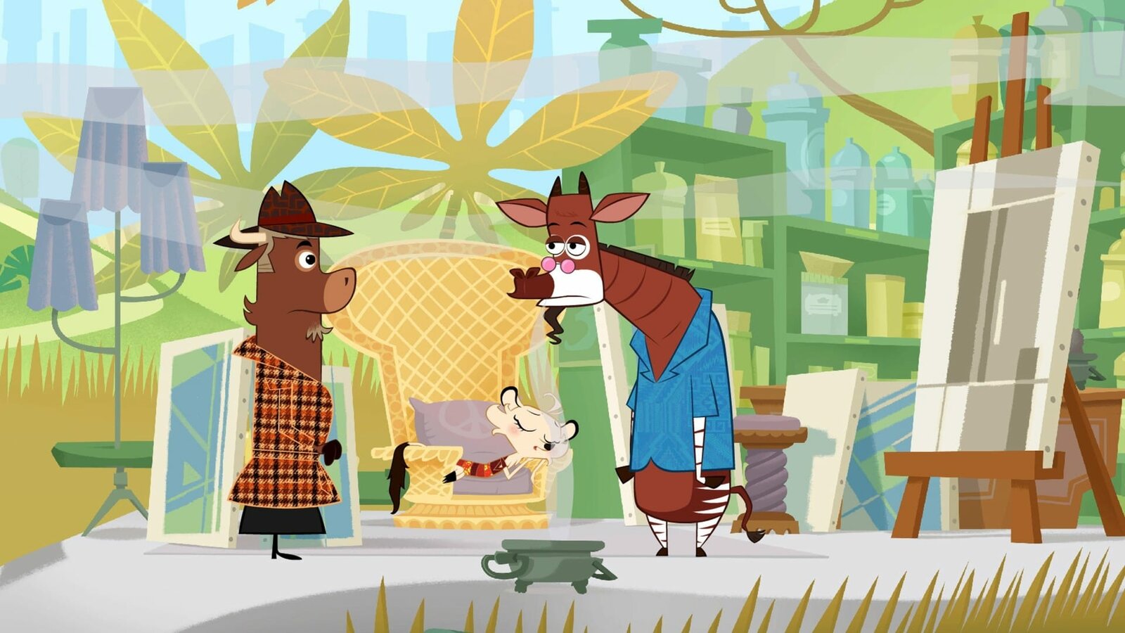 Wer hat die Schildkröte ausgebremst?Auch Okapi ist Hobbymaler und somit verdächtig.Bild: © ZDF/Mondo tv