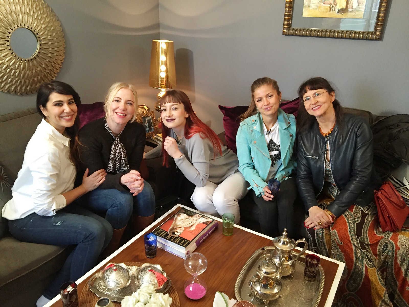 Motto in München: Verstrickt und zugenäht - Kreiere einen aufregenden Look rund um deinen neuen Cardigan!, Tag 4: NadiaV.l.: Tageskandidatin Nadia, Alexandra "Alex", Alina, Laura und Sabine.Bild: © VOX / Constantin Ent.