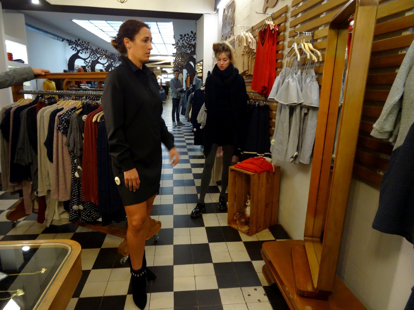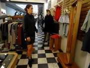 Motto in Düsseldorf: Feine Beine - Zeige mit deinem Outfit, dass es auf die richtige Masche ankommt!, Tag 3: AnnKandidatin Ann und Verkäuferin (r.)Bild: © TVNOW / Constantin Ent.