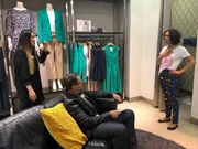 Motto in Dortmund: Mix it, Baby! Kreiere einen coolen Look mit verschiedenen Materialien!, Tag 1: ZeynepV.l.: Verkäuferin, Kandidatin Zeynep und Shoppingbegleitung SabineBild: © TVNOW / Constantin Ent.