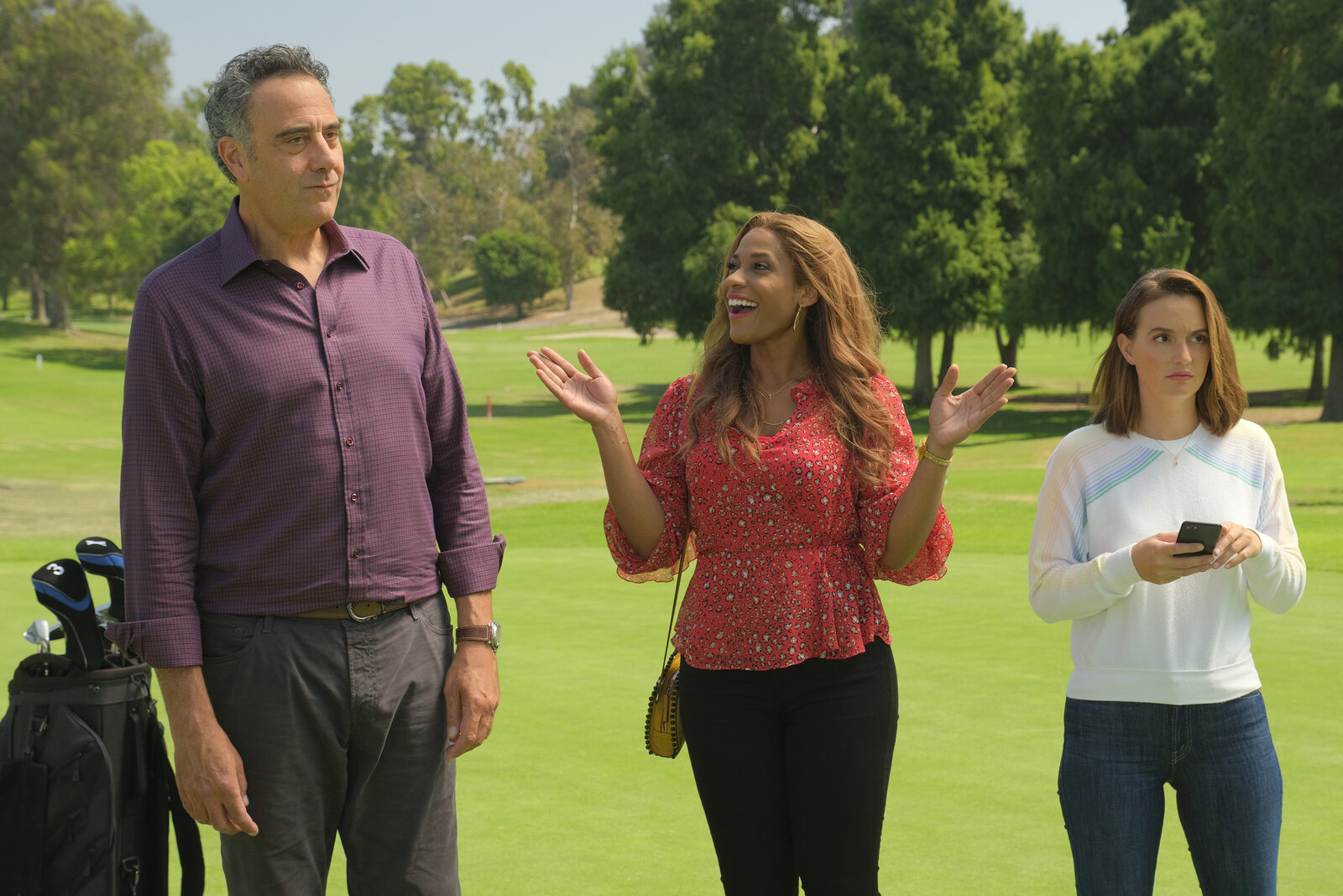Oh Shit, sie bekommt ein Baby(v.l.n.r.) Douglas Fogerty (Brad Garrett); Poppy Banks (Kimrie Lewis); Angie D'Amato (Leighton Meester)Bild: © 2019-2020 American Broadcasting Companies. All rights reserved. / Erin Simkin / Erin Simkin