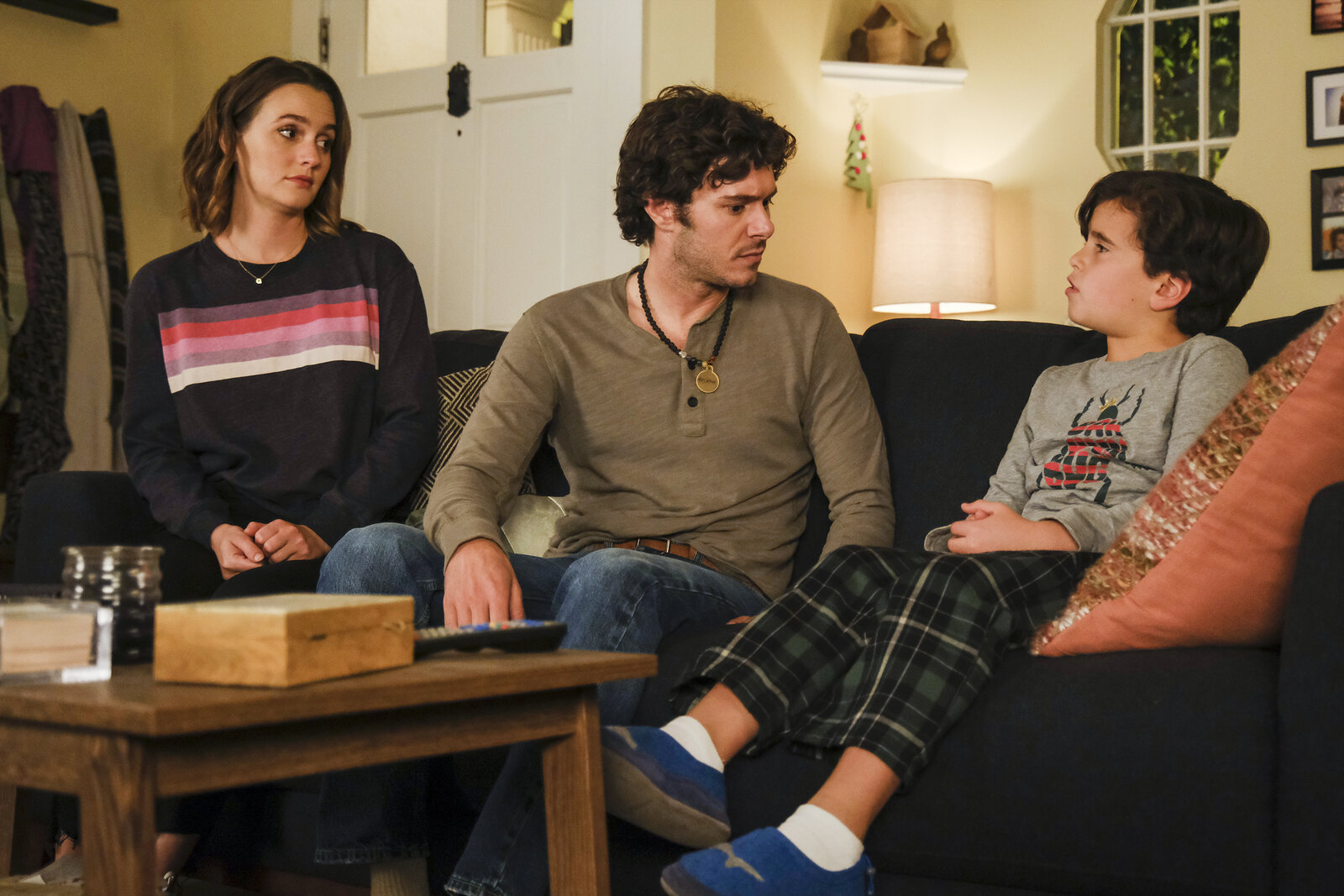 Häppchen(v.l.n.r.) Angie D'Amato (Leighton Meester); Derek (Adam Brody); Graham D'Amato (Tyler Wladis)Bild: © 2019-2020 American Broadcasting Companies. All rights reserved. / Scott Everett White / Scott Ever