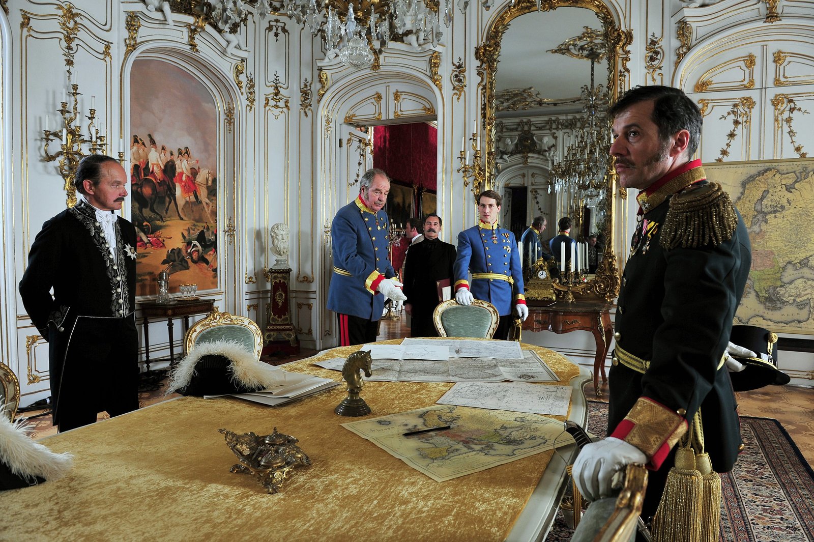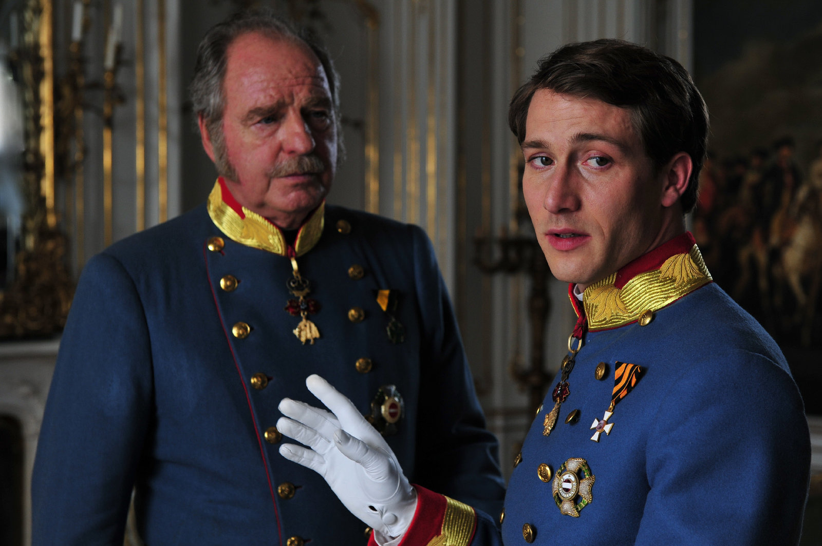 Teil 1Kaiser Franz Joseph (David Rott, rechts) diskutiert mit seinem Feldmarschall Graf Radetzky (Friedrich von Thun, links) Yber die AufstSnde im Reich. Honorarfrei - nur fYr diese Sendung bei Nennung ZDF und Bernhard BergerBild: © ZDF und Bernhard Berger