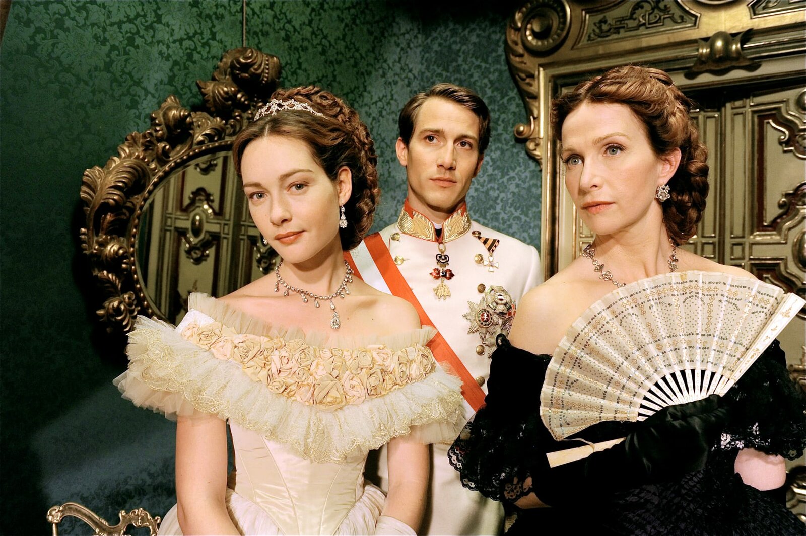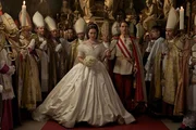 Teil 1Sisi (Cristiana Capotondi, li.) und ihre erste Hofdame Gräfin Esterhazy (Franziska Stavjanik, re.) begleiten Kaiser Franz (David Rott) bei einem offiziellen Empfang.Bild: © ORF/Sunset Film/Bernhard Berger