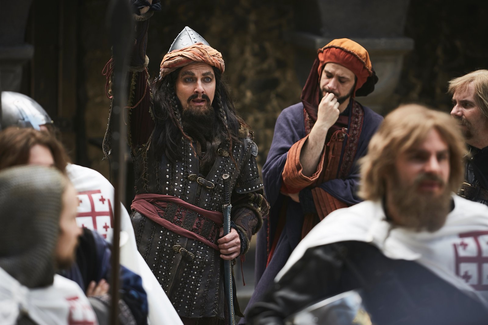 Folge 21Ein Seldschuke (Holger Stockhaus, 4.v.l.) leistet angesichts des nahenden Kreuzzugs Aufklärungsarbeit für die Kreuzritter (Paul Sedlmeir 2.v.r., Carsten Strauch, r.).Bild: © ZDF und Kristof Galgoczi Nemeth./Kristof Galgoczi Nemeth