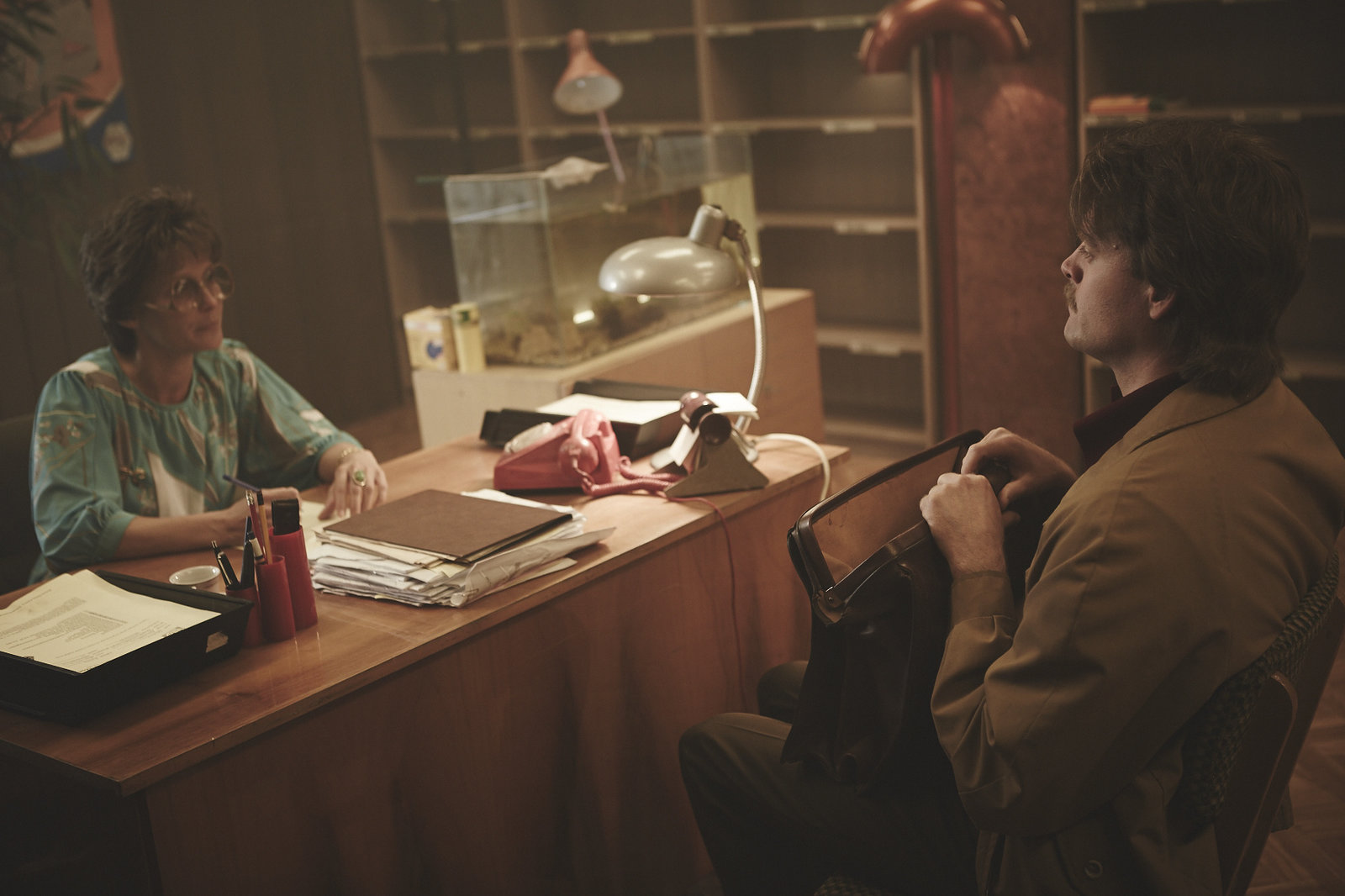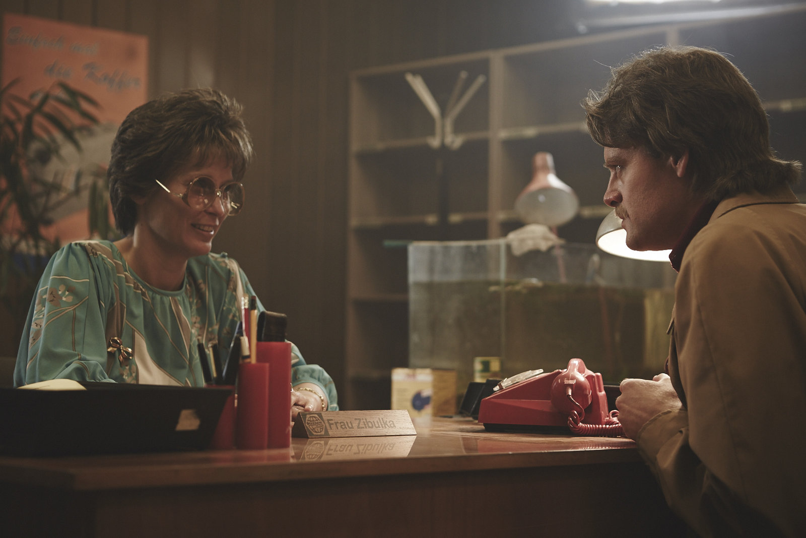 Folge 12Valerie Niehaus und Max Giermann in einem DDR-Reisebüro.Bild: © ZDF und Kristof Galgoczi Nemeth