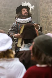 Folge 7Shakespeare (Matthias Matschke) versucht sich auf dem Marktplatz Gehör zu verschaffen - auf bekannt komplizierte Weise.Bild: © ZDF und Kai Schulz