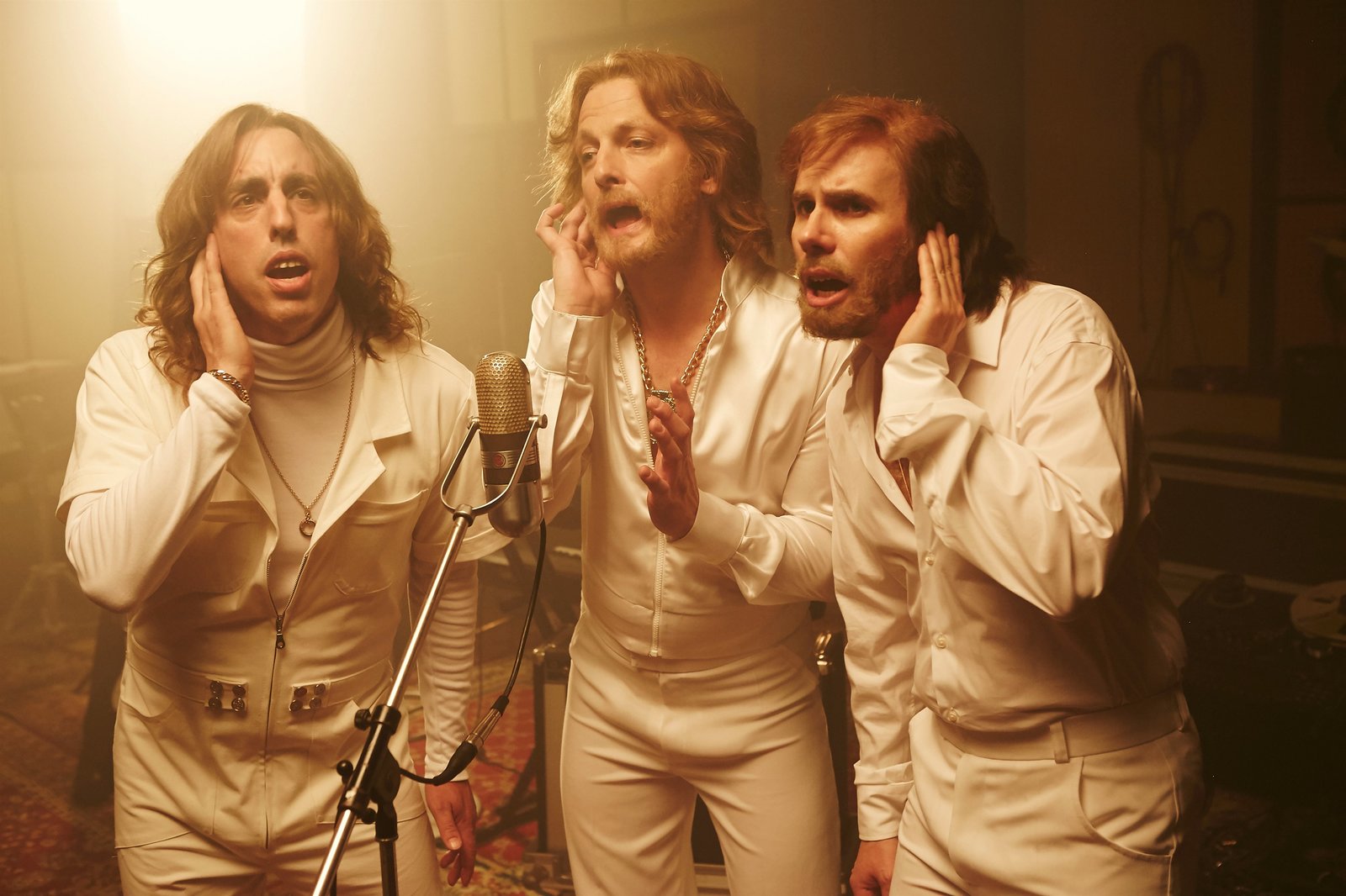 Folge 27Bis zur Perfektion, oder doch eher bis zum höchsten Ton? Die Bee Gees proben (vlnr.: Alexander Schubert, Holger Stockhaus und Carsten Strauch).Bild: © ZDF und Kristof Galgoczi Nemeth.