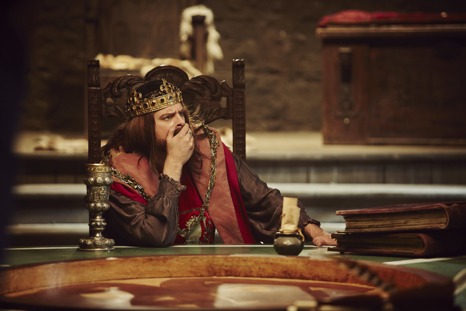 Folge 20Der Bischof von Arl (Max Giermann) lässt (fast) nichts anbrennen und antwortet einer Hexe auf dem Scheiterhaufen im Rahmen eines Musicals.Bild: © ZDF und Kristof Galgoczi Nemeth