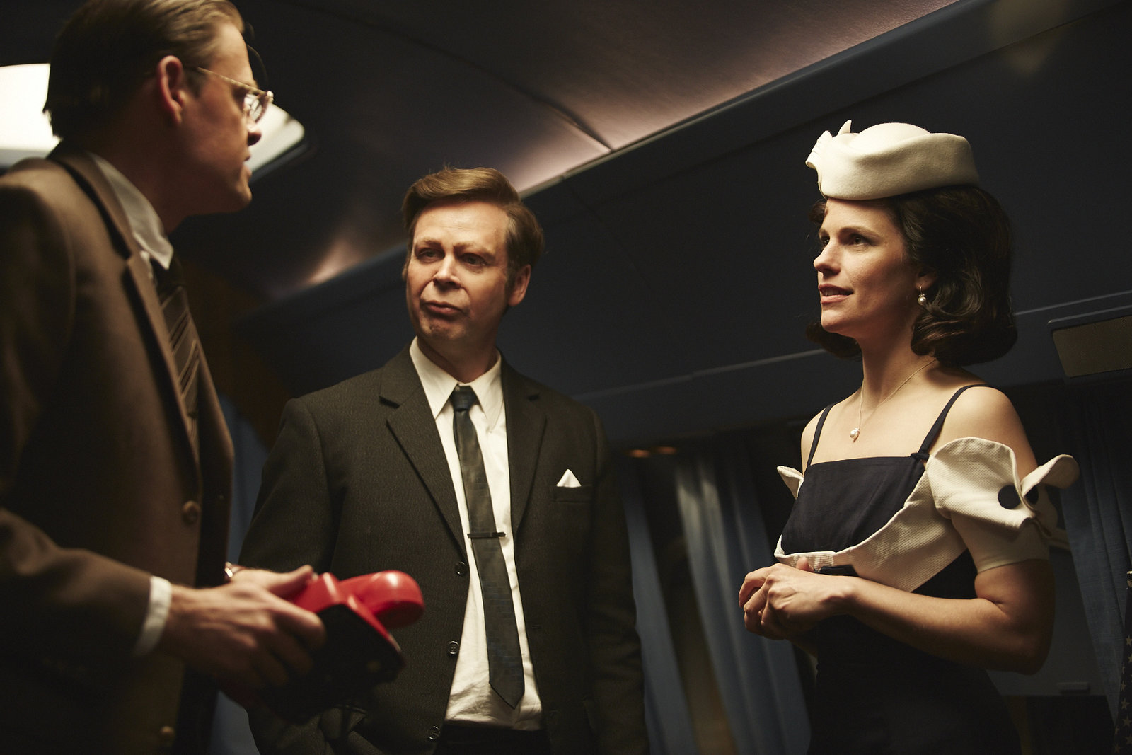 Folge 13McNamara (Max Giermann, l.) versucht es mal mit Vernunft, sein Chef, John F. Kennedy (Matthias Matschke, M.), lässt sich aber nur kurz von der attraktiven Stewardess (Isabell Polak, r.) ablenken.Bild: © ZDF und Kristof Galgoczi Nemeth