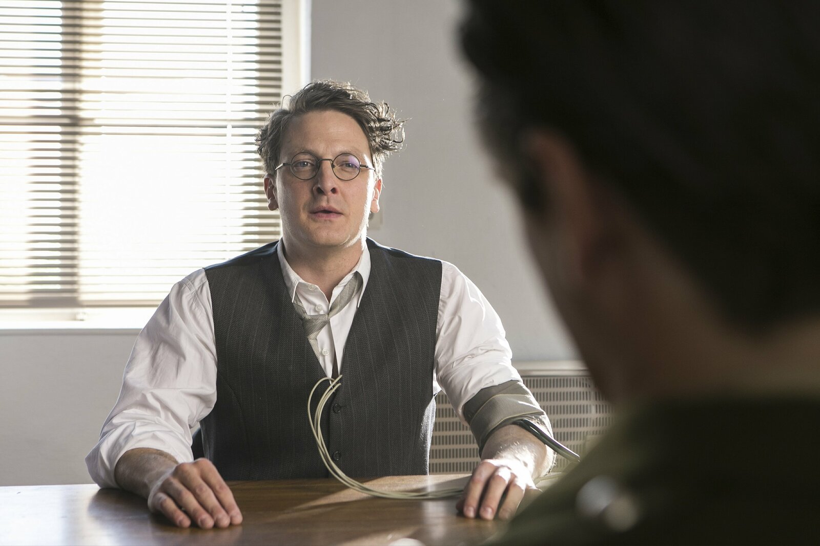 Folge 8Spion Klaus Fuchs (Holger Stockhaus) ist sichtlich mitgenommen durch die neue Verhörmethode.Bild: © ZDF und Kai Schulz