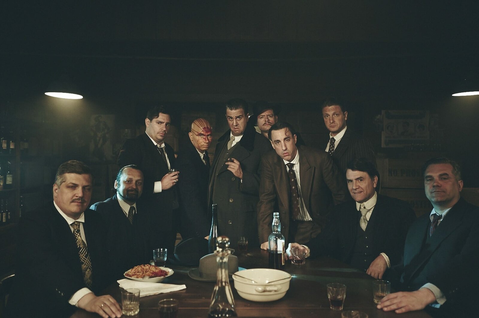 Folge 18Al Capone (Bastian Pastewka) umringt von seinen Mafiosi (von hinten links: Paul Sedlmeir, Carsten Strauch, Max Giermann, Alexander Schubert und Holger Stockhaus).Bild: © ZDF und Kristof Galgoczi Nemeth