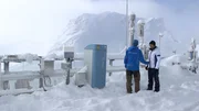 Die Zugspitze - Klimaforschung auf Deutschlands höchstem Berg (3) Der Buchhalter des KlimawandelsCédric Couret (links) zeigt Moderator Karsten Schwanke die Messgeräte des Umweltbundesamts auf dem Schneefernerhaus.Bild: © BR/Maximilian Schecker