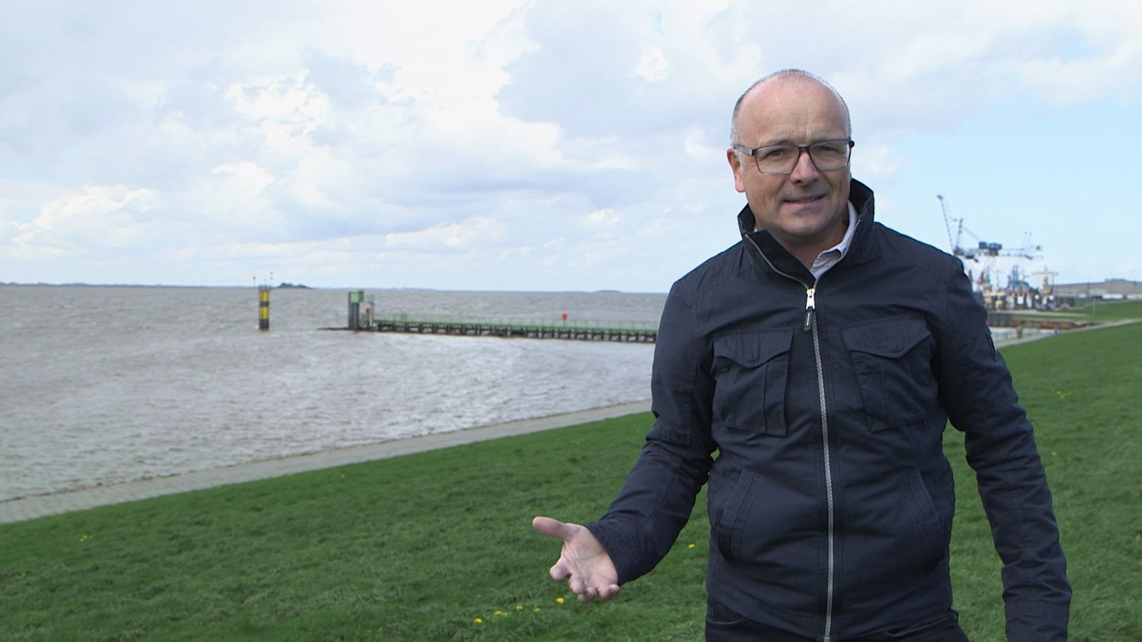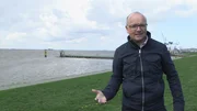 Austern für die WissenschaftKarsten Schwanke auf einem Deich. Der Deich trennt Meer und Land, den Bereich, den wir gemeinhin Küste nennen und der zu einem immer wichtigeren Lebensraum weltweit wird.Bild: © BR/Maximilian Schecker / Maximilian Schecker