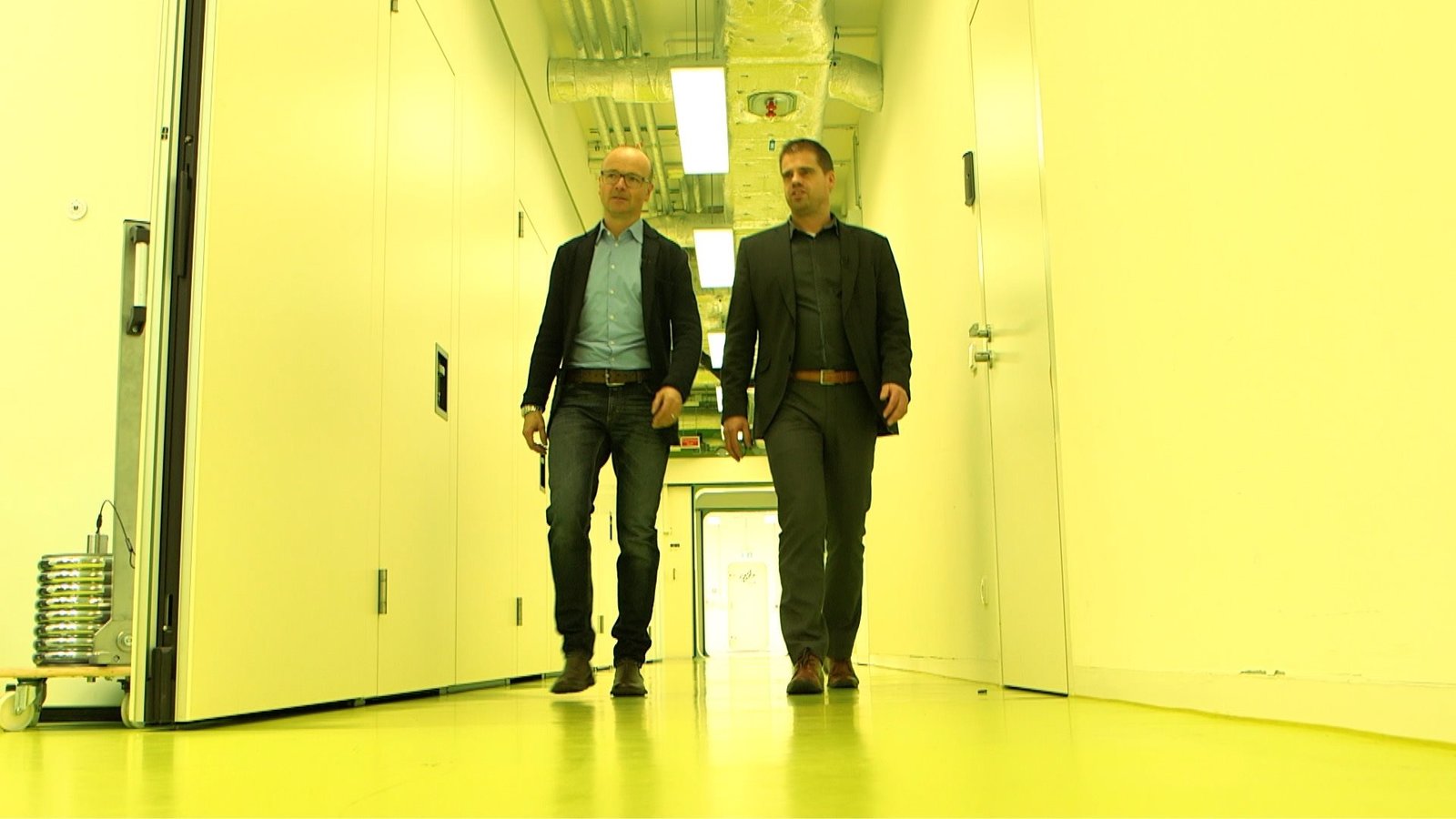 Fit für die ISS - Astronautenausbildung in Köln (2) Schlafen fürs WeltallKarsten Schwanke (rechts) und Dr. Edwin Mulder in den hochmodernen Räumen des DLR-Schlaflabors.Bild: © BR/Maximilian Schecker