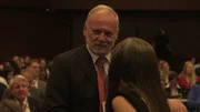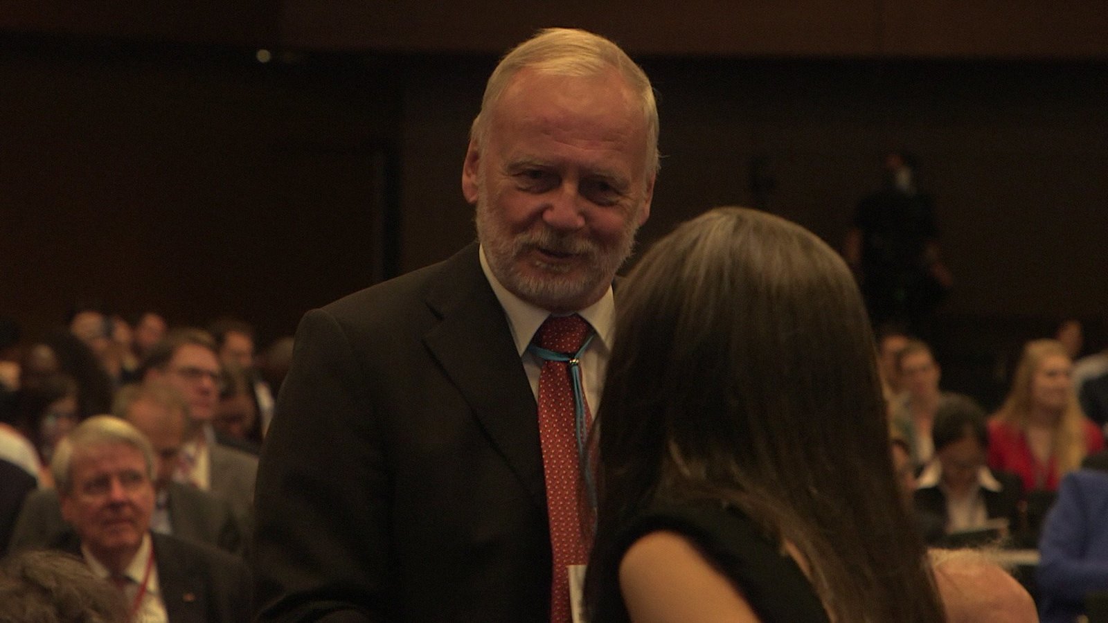 Nobelpreisträger in Lindau (2)Jedes Jahr kommt Ende Juni in Lindau ein erlauchter Kreis von Nobelpreisträgern mit jungen Nachwuchswissenschaftlern aus aller Welt zusammen, um sich über die Forschung der Zukunft auszutauschen. Karsten Schwanke ist bei der 68. Lindauer Nobelpreisträgertagung dabei und gibt exklusive Einblicke. Diskutiert wird in diesem Jahr über medizinische Themen. Im Bild: Hartmut Michel, Nobelpreisträger Chemie 1988, im Gespräch.Bild: © BR/Maximilian Schecker