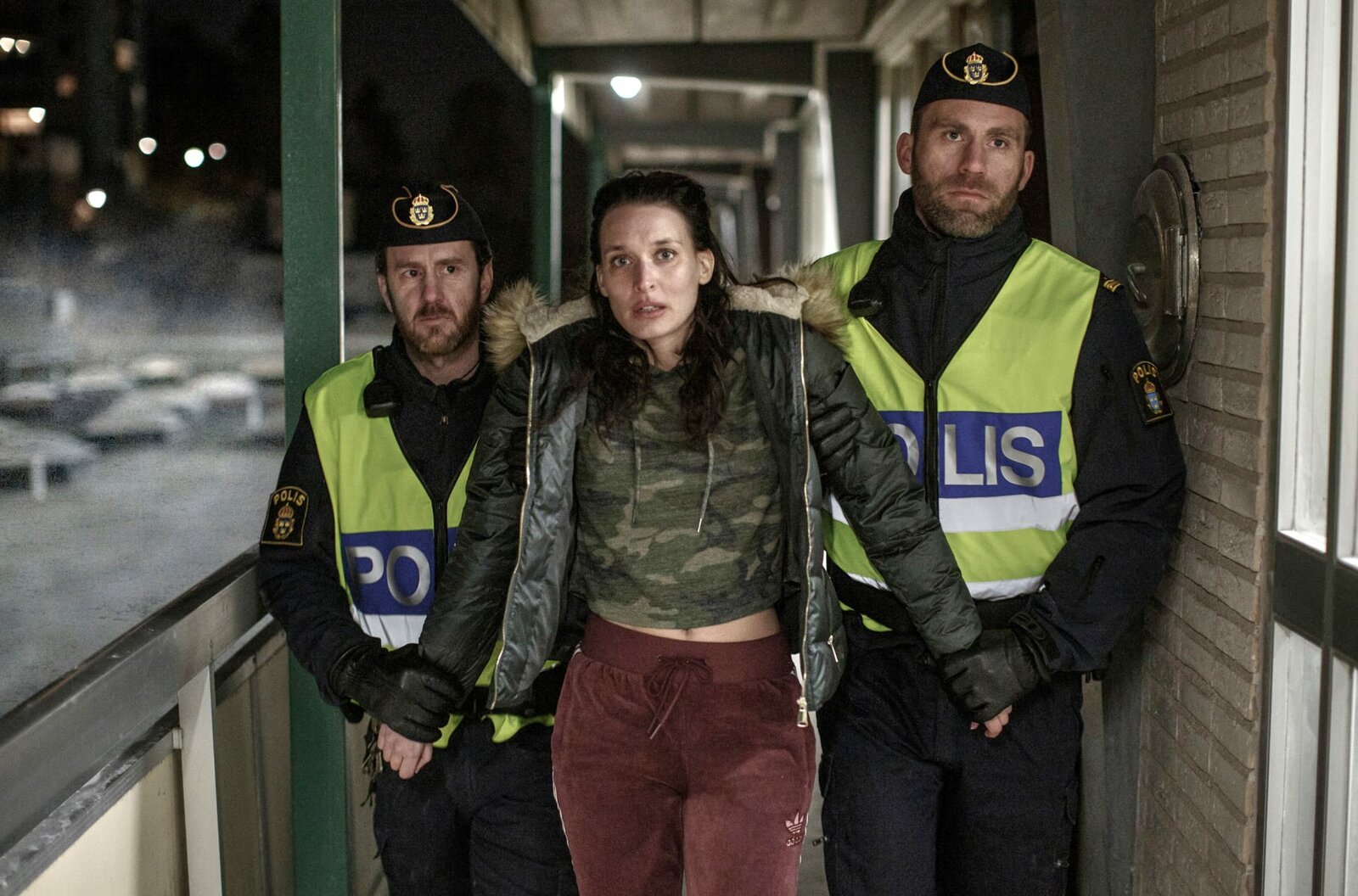 Gestohlene ZeitJenni (Josefine Asplund, Mitte) gerät im Verhör unter Druck.Bild: © SVT 2020/Johan Paulin