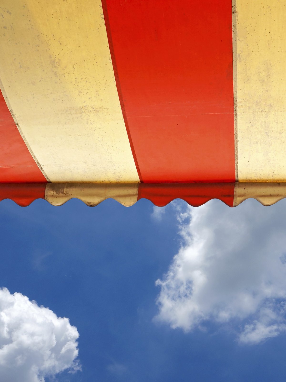 Awning over bright sunny blue sky