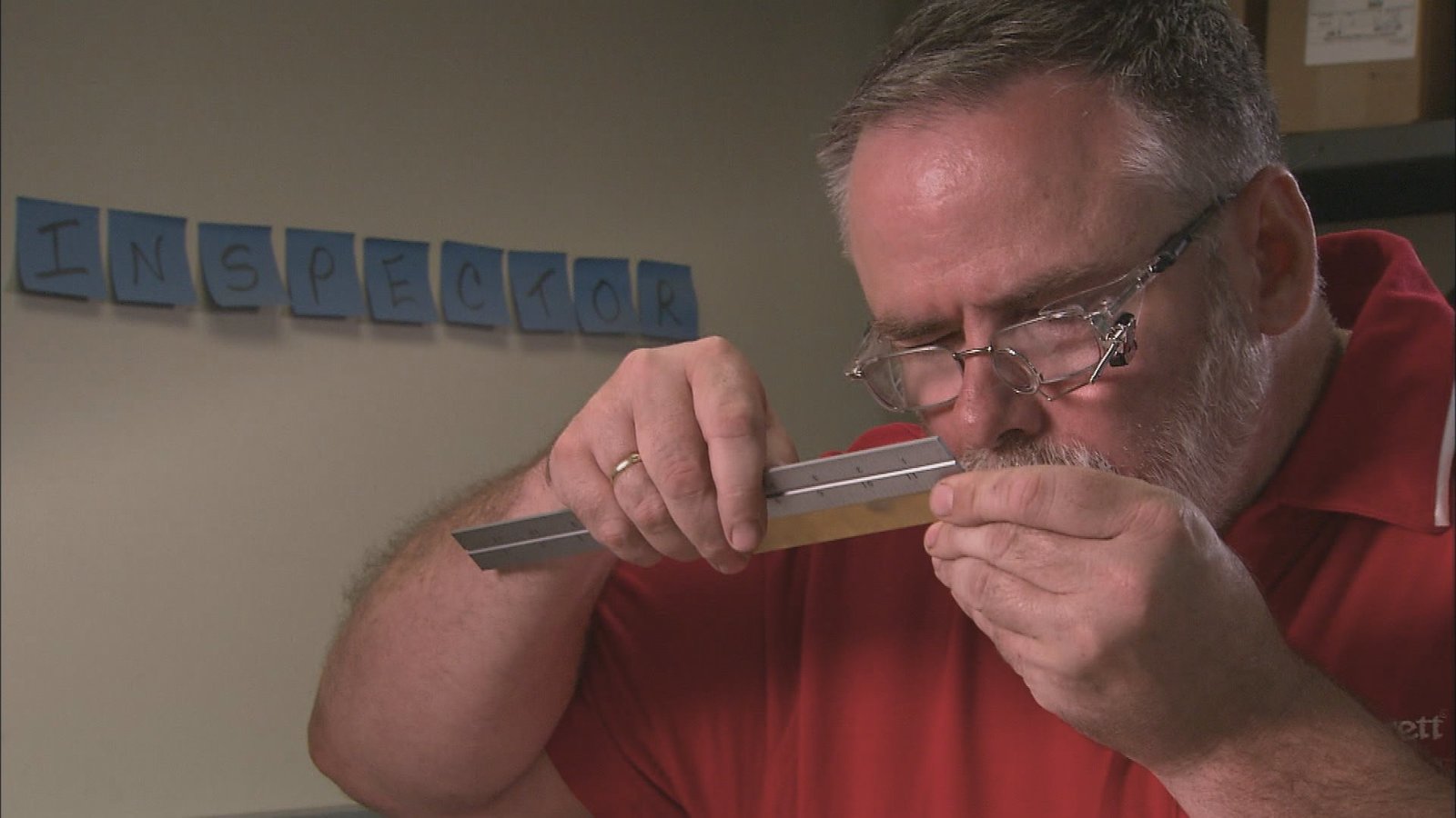 Drawing plans on a board.