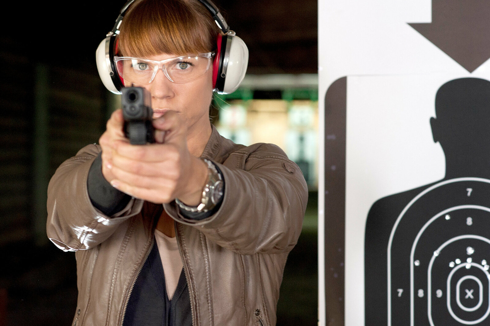 Anatomie eines MordesShowdown - Ermittler Klaus Lechner (r.: Andreas Kiendl) will Sivila Hassler (l.: Eva Herzig) von der Selbstjustiz abhalten.Bild: © ZDF und Bernd Schuller