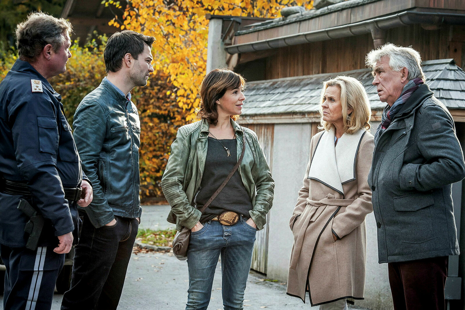 Bling Bling totSOKO Kitzbühel - Staffel 15 Bling Bling tot , Folge 202 Ferry Oellinger als Kroisleitner, Jakob Seeböck als Lukas Roither, Julia Cencig als Nina Pokorny, Andrea L'Arronge als Gräfin Schönberg, Heinz Marecek als Hannes Kofler. SRF/ORF/Stefanie LeoBild: © SRF2