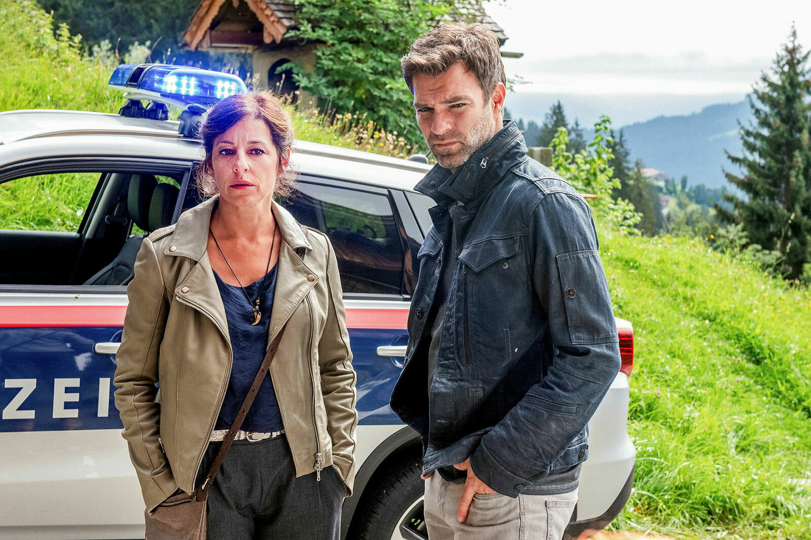 Grünes FeuerSOKO Kitzbühel Staffel 19 Folge 9 das Kitzbüheler Ermittlerteam: Julia Cencig als Nina Pokorny, Jakob Seeböck als Lukas Roither SRF/ORFBild: © SRF2
