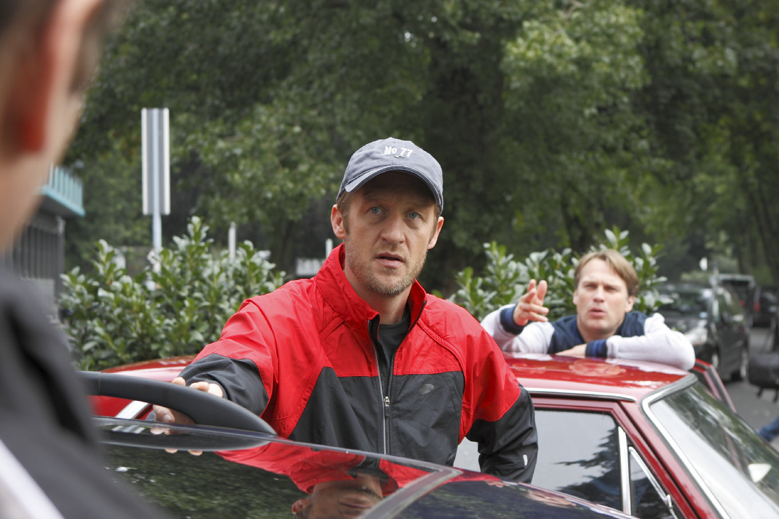 Ein Schuss, kein TorMatti Wagner (Pierre Besson, r) bietet dem Fußballer Reinhold Mückeberg (Stephan Kampwirth) nicht ganz uneigennützig eine Mitfahrgelegenheit an.Bild: © S1