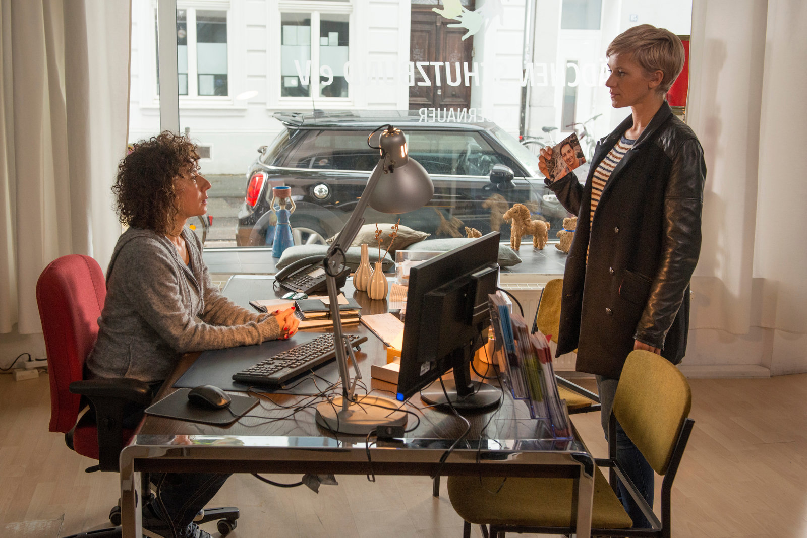 Die Römer von BocklemündDer Autohausbesitzer Ulrich Leber (Patrick von Blume) glaubt für die Tatzeit ein Alibi zu haben. Julia Marschall (Lilia Lehner, l) und ihre Kollegin Vanessa Haas (Kerstin Landsmann) haben aber das Gefühl, das Lebers gute Laune nur gespielt ist.Bild: © S1