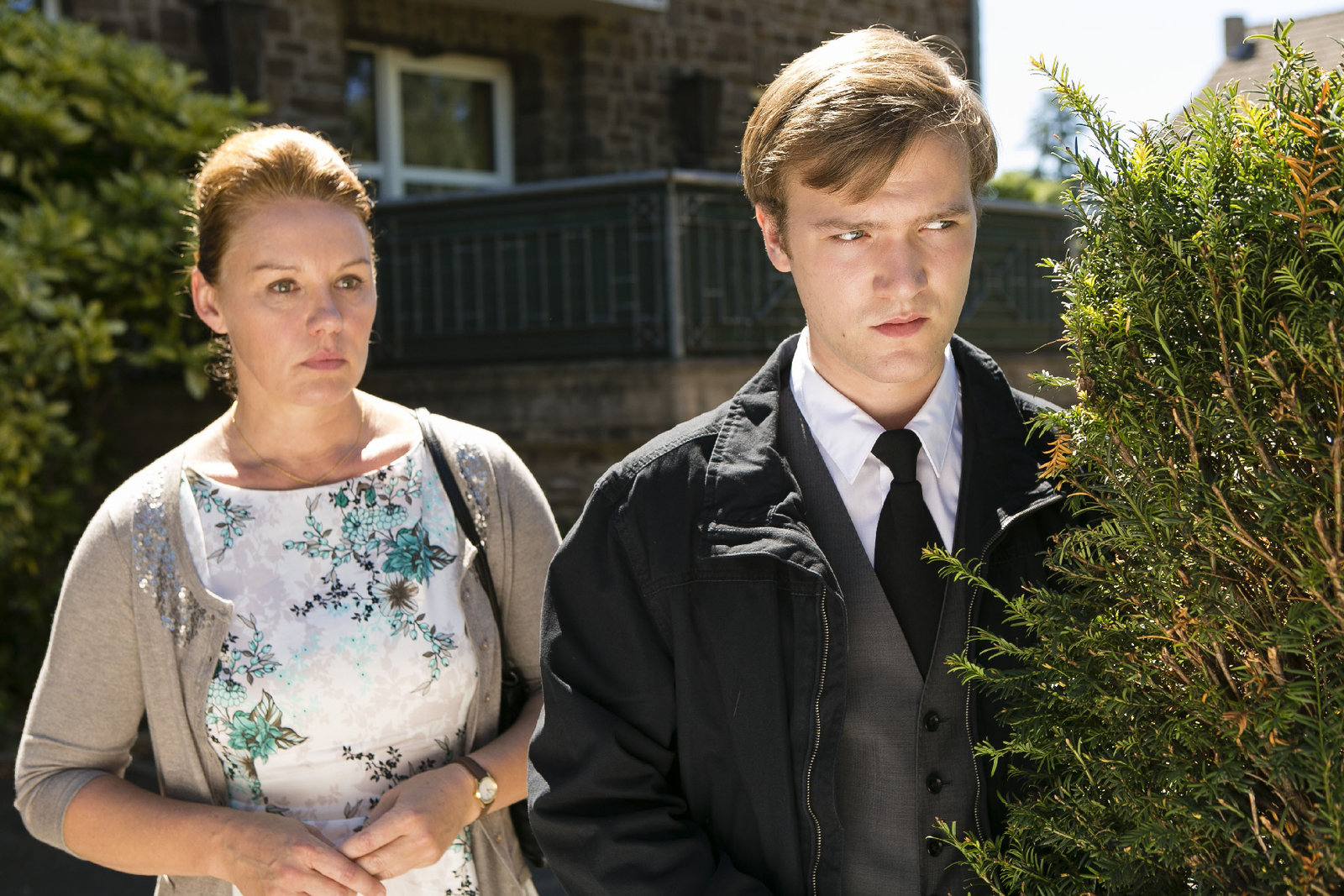 Wer ohne Sünde istDie Küsterin Sabine Walder (Maike Bollow) und ihr Sohn Georg (Vincent Redetzki) beobachten heimlich die Polizeiarbeiten. Haben sie etwas mit dem Tod der Pfarrerstochter zu tun?Bild: © ZDF und Michael Boehme