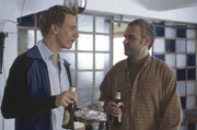 AuszeitMaik Frohnert (Christian Hankammer, l.) jobbte bis zu seinem Tod auf dem Hof von Klaus Hettich (Peter Trabner, r.). War der Sohn der Hettichs, den der Vater wegen seiner Homosexualität ablehnt, eifersüchtig auf die Beziehung, die die beiden Männer zueinander aufgebaut hatten?Bild: © ZDF und Martin Rottenkolber.