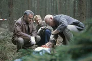 Mörderisches WochenendeKurz vor dem Mord hatten Markus Roggisch (Hilmi Sözer, r.) und das Mordopfer Streit. Die Kommissare Anna Maiwald (Diana Staehly, l.) und Matti Wagner (Pierre Besson, M.) vermuten mehr dahinter. Was ist an jenem Abend im Dorfkrug passiert?Bild: © ZDF und Michael Böhme