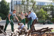 ChancenlosThomas Löb (Peter Jordan, r.) fühlt sich am Arbeitsplatz weiterhin gemobbt. Rasend vor Wut prügelt er auf Ralf Tecklenburg (Peter Trabner, 2.v.l.). Diese unverhohlene Gewaltbereitschaft macht Löb nun zum Hautverdächtigen. Ist der Landschaftsarchitekt zum Morden fähig?Bild: © ZDF und Michael Boehme