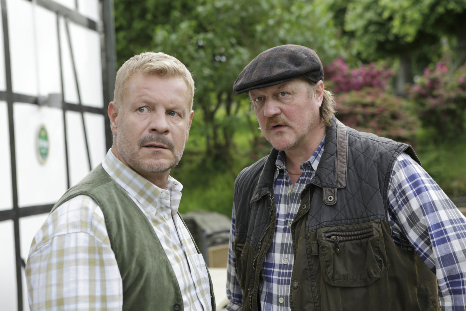 Späte ReueIm nahgelegenen See wurde ein Autowrack mit einer Leiche gefunden. Anscheinend ein Unfall. Handelt es sich wirklich um den vor vielen Jahren angeblich ermordeten Klaus Waffenschmidt? Günter Pietsch (Klaus Lehmann, l) und Bauer Hans-Jürgen Brotkamp (Jürgen Rißmann, r), dem mittlerweile der Hof des Verstorbenen gehört, können es kaum glauben - haben sie doch damals Frau Waffenschmidt des Mordes bezichtigt und mit ihrer Aussage ins Gefängnis gebracht.Bild: © ZDF und Michael Böhme